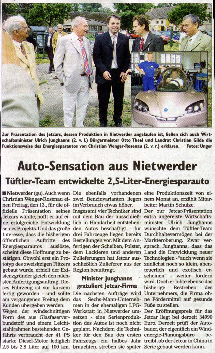 Ruppiner Tageblatt der MAZ vom 14.08.04:
